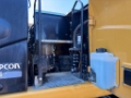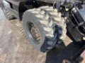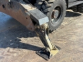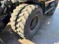 The machine is fitted with dual tyres, outriggers and a front dozer blade, providing excellent stability and flexibility during operation.