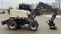 Fin maskine med direkte monteret Engcon tiltrotator med integreret gribeklo. 36 km/t transmission og skærme over hjul. Centralsmøring. Supportblad.