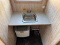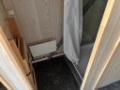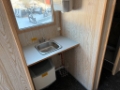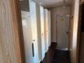 Omklädningsrum, dusch, torkskåp, diskbänk.