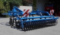 3-balkiger Grubber mit 3 Metern Arbeitsbreite, 10 Zinken, höhenverstellbares Scheibeneinebnungsfeld mit gezackten, gummigelagerten Scheiben, Flügelscharzinken, Federbandwalze und Beleuchtung mit Warntafeln. Stab-, Packer-, Dachring- bzw. Gummiringwalze etc. optional verfügbar. Arbeitsbreiten von 2,6 bis 5,0 Meter mit hydraulischer Klappung verfügbar.
