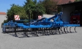 Leichtgrubber mit 5 Metern Arbeitsbreite, hydraulische Klappung, 32 Goliathzinken, Breitschar (200 mm), Zinkensystem Belotta, 15,6 cm Strichabstand, Rohrstabwalze (Abbildung mit Tandemwalze!) und Beleuchtung mit Warntafeln.
