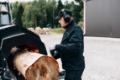 Pro+ modellen er utstyrt med den ergonomiske og hydrauliske joystick-styringen hastighetsstyring av utmatingstransportøren, manøvrering av Midi- eller Mega-stokkbord.