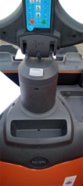 Plattform manuell hochklappbar, feste Seitenschutzwände mit schmalem Deichselgriff, kurzer Deichselarm, Servolenkung, 12,5 km/h Version, Gabelrollen Tandem, Stützrad Einfach- Premium, Antriebsrad - Premium, PIN-Code