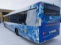 The battery is 56.5 kWh and the range is then approx. 50 km. The bus is equipped with an inverted pantograph. The pantograph is lowered to a contact rail on the bus. The pantograph has not been used and the buses have been charged at the depot.