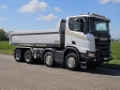 Number of axles: 4, Configuration: 8x4, Own weight: 14680 kg, Gross vehicle weight: 43000 kg, Total fuel capacity: 350 litre, Trailer coupling, Kingpin size: Special, fifth-wheel: Fixed, Diff. locks: 2, Aluminium rims, Central lubrication, Suspension type: air suspension, Cabin type: Short cabin, Cruise control, Tacho, Digital tachograph, Airconditioning, Electric windows, Electric mirrors, Radio/cassette, Carplay, GPS navigation, Color: Gray, Metallic, Heated mirrors, Reversing camera, Lighting type: Halogen lamps, Climatecontrol, Seat heating, Bluetooth, Flashing lights, Engine capacity: 368 Kw (493 Hp), Fuel type: diesel, Euro: 6, Gearbox kind: Opti-cruise, Gearbox make: Scania, Number of Gears: 12, Clutch Pedal, Add. break system, Retarder make: Scania, Power steering, ABS, ASR, PTO, PTO type: 1, Starter battery, Tipping possibilities: 1 side, system type: ., Pump, Central locking, Seats configuration: 1+1, Seat cover: cloth, Chair adjustment: Manually