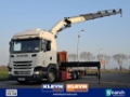 Number of axles: 3, Configuration: 6x2, Own weight: 18740 kg, Gross vehicle weight: 27600 kg, Total fuel capacity: 500 litre, Trailer coupling, Kingpin size: 40 DIN, fifth-wheel: Fixed, Diff. locks: 1, Suspension type: air suspension, Cabin type: Sleeping cabin, Cruise control, Tacho, Digital tachograph, Airconditioning, Parking Airco, Parking heater, Electric windows, Electric mirrors, Radio/cassette, Color: white, Heated mirrors, Lighting type: Halogen lamps, Climatecontrol, Seat heating, Bluetooth, Flashing lights, Engine capacity: 331 Kw (444 Hp), Fuel type: diesel, Euro: 6, Gearbox kind: Opti-cruise, Gearbox make: Scania, Number of Gears: 12, Add. break system, Retarder make: Scania, Power steering, ABS, ASR, PTO, PTO type: 1, Starter battery, Twistlocks: 1x20, system type: ., Pump, Central locking, Seats configuration: 1+1, Seat cover: cloth, Chair adjustment: Manually, Crane, Crane make: HMF 5020-K5, Year crane: 2014, Capacity crane: 50000, Maximum load: 2710 kg bij 14,5 m., Number of supports: 4, CE-approved, Log book, Crane position: Behind the cabin, Hydraulic extendable: 5 times, Extra hydr. conn.: none, Hook