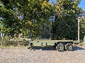REMORQUE PORTE ENGIN PLATEAU 2 ESSIEUX PROPRE ANNEE 1988 PTAC 13 000 KILOS POIDS VIDE 3000 KG 8M60 DE LONG 2.4M DE LARGE 21M2 SURFACE PROPRE DISPONIBLE REMORQUE PLATEAU PORTE ENGIN POUR ENGIN TP Avec 2x bequilles, 2x essieux, 4x roues, prix HT départ Lhommaizé