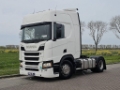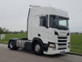 Number of axles: 2, Configuration: 4x2, Own weight: 8414 kg, Gross vehicle weight: 18600 kg, Total fuel capacity: 1200 litre, 2nd fueltank, Fifth wheel height: 116 cm, fifth-wheel: Fixed, Diff. locks: 1, Aluminium rims, Suspension type: air suspension, Cabin type: Highline, Cruise control, Tacho, Digital tachograph, Airconditioning, Parking Airco, Parking heater, Electric windows, Electric mirrors, Radio/cassette, Color: white, Heated mirrors, Lighting type: Halogen lamps, Laneassist, Climatecontrol, Seat heating, Bluetooth, Blind spot sensor, Engine capacity: 302 Kw (405 Hp), Fuel type: diesel, Euro: 6, Gearbox kind: Opti-cruise, Gearbox make: Scania, Number of Gears: 12, Add. break system, Retarder make: Scania, Power steering, ABS, ASR, Starter battery, Central locking, Seats configuration: 1+1, Seat cover: cloth, Chair adjustment: Manually